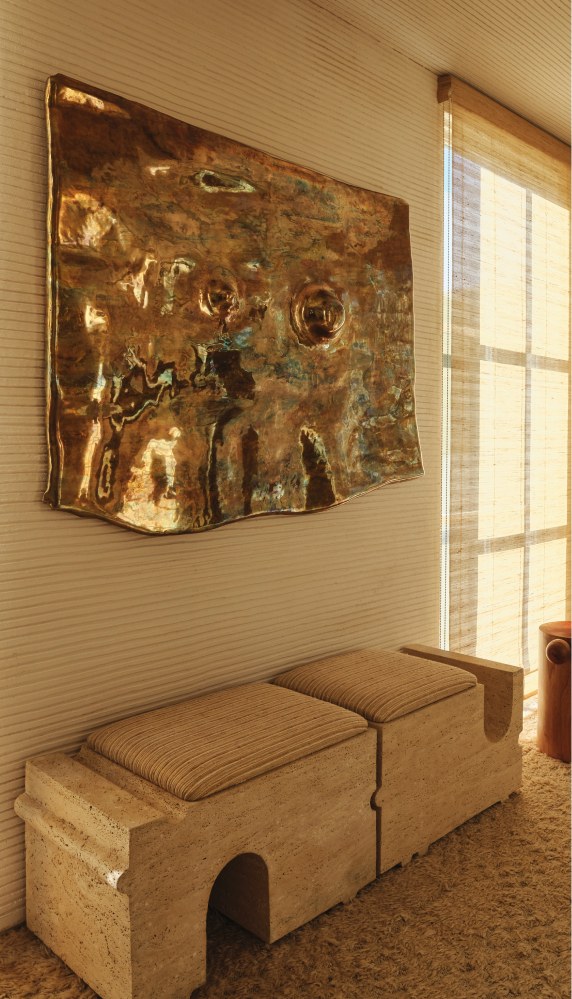 Kelly Wearstler's collection of luxury benches features a curated range of sculptural and upholstered seating, handcrafted in Los Angeles by master artisans. The assortment includes custom entryway benches, bedroom benches, and modern sculptural forms, offered in rich materials like bouclé, mohair, leather, and stone. Artful detailing—from hand-applied finishes to bold architectural lines—infuses each piece with a distinct sense of character and craftsmanship. Designed to complement both minimalist and expressive interiors, these handmade designer benches bring the signature style of a Los Angeles luxury designer to any space.